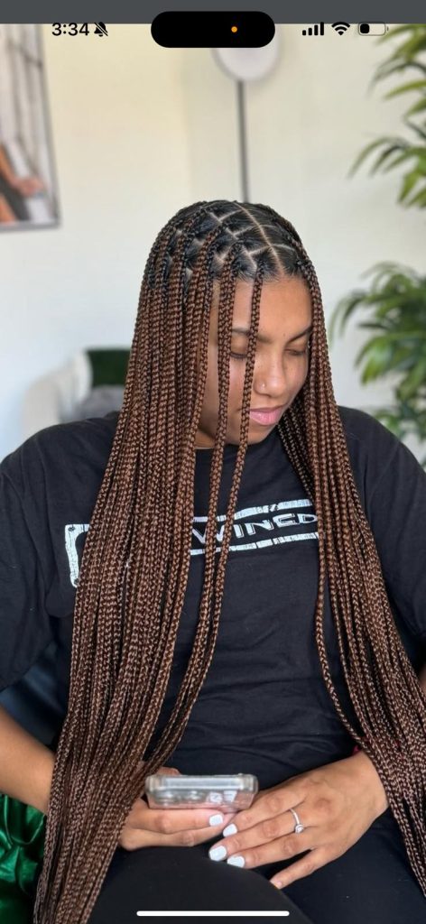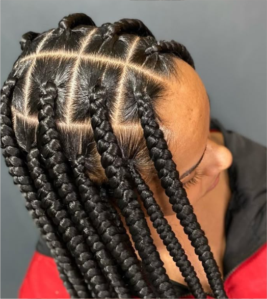 Big, loose knotless braids for a bohemian, free-spirited vibe.