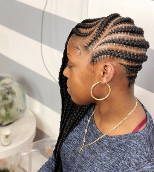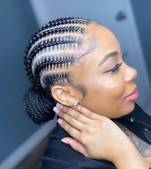 Cornrows with sharp, defined partings for a precise, stitched appearance.