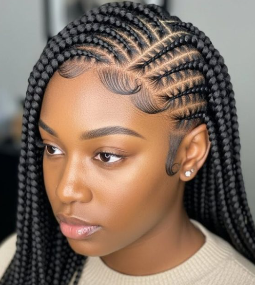 Side-swept braids inspired by Beyoncé, offering a stylish and elegant look.