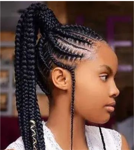 Braids gathered into a sleek ponytail for a practical yet stylish look.